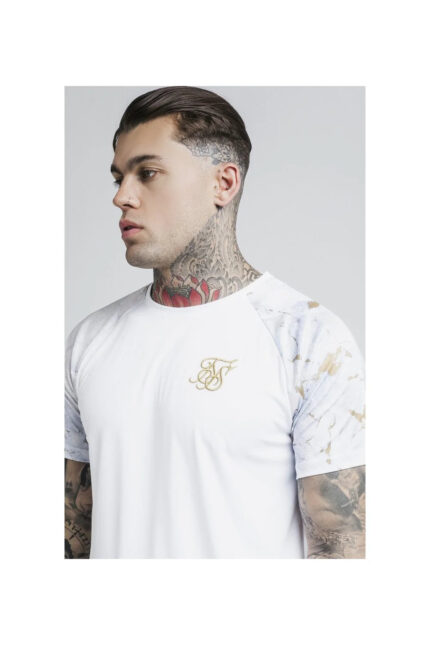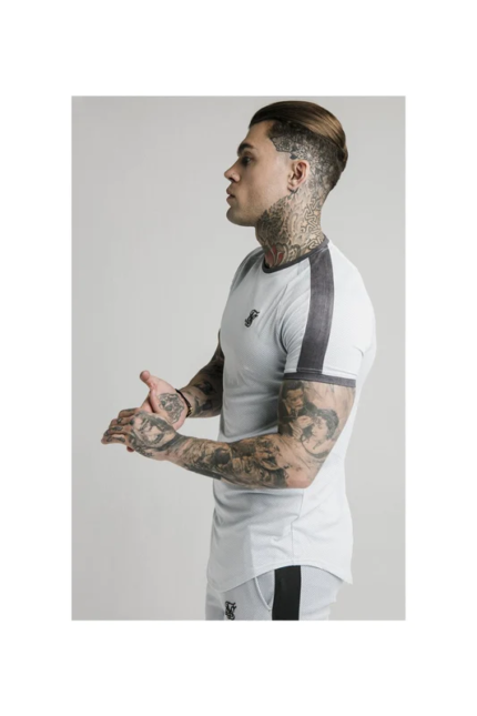Marbleise Raglan Curved Hem Tee – White & Light Grey