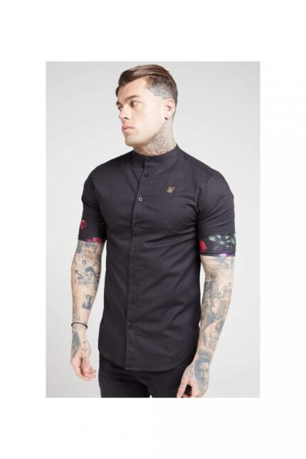 Midsleeve Grandad Collar Shirt Black / Oil Paint