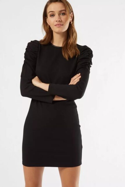Black Ruched Sleeve Shift Dress