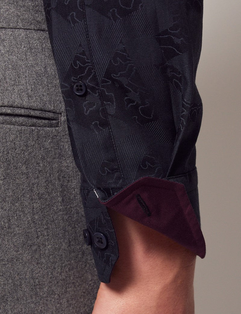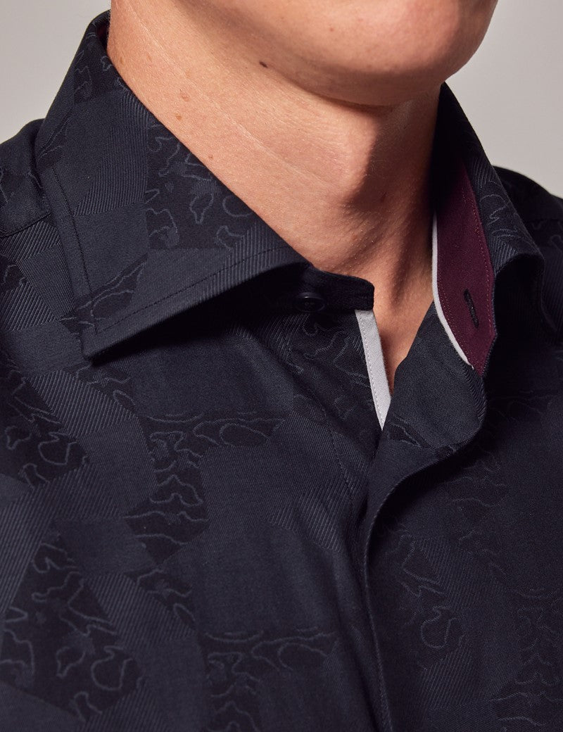 You can never go wrong in a classic black shirt. The dobby weave and contrast inner collar and cuffs elevate the traditional shirt with a modern edge. This casual shirt has been specially engineered to flatter your physique with gentle tapering to maximise comfort in a relaxed slim fit. Made from premium cotton.