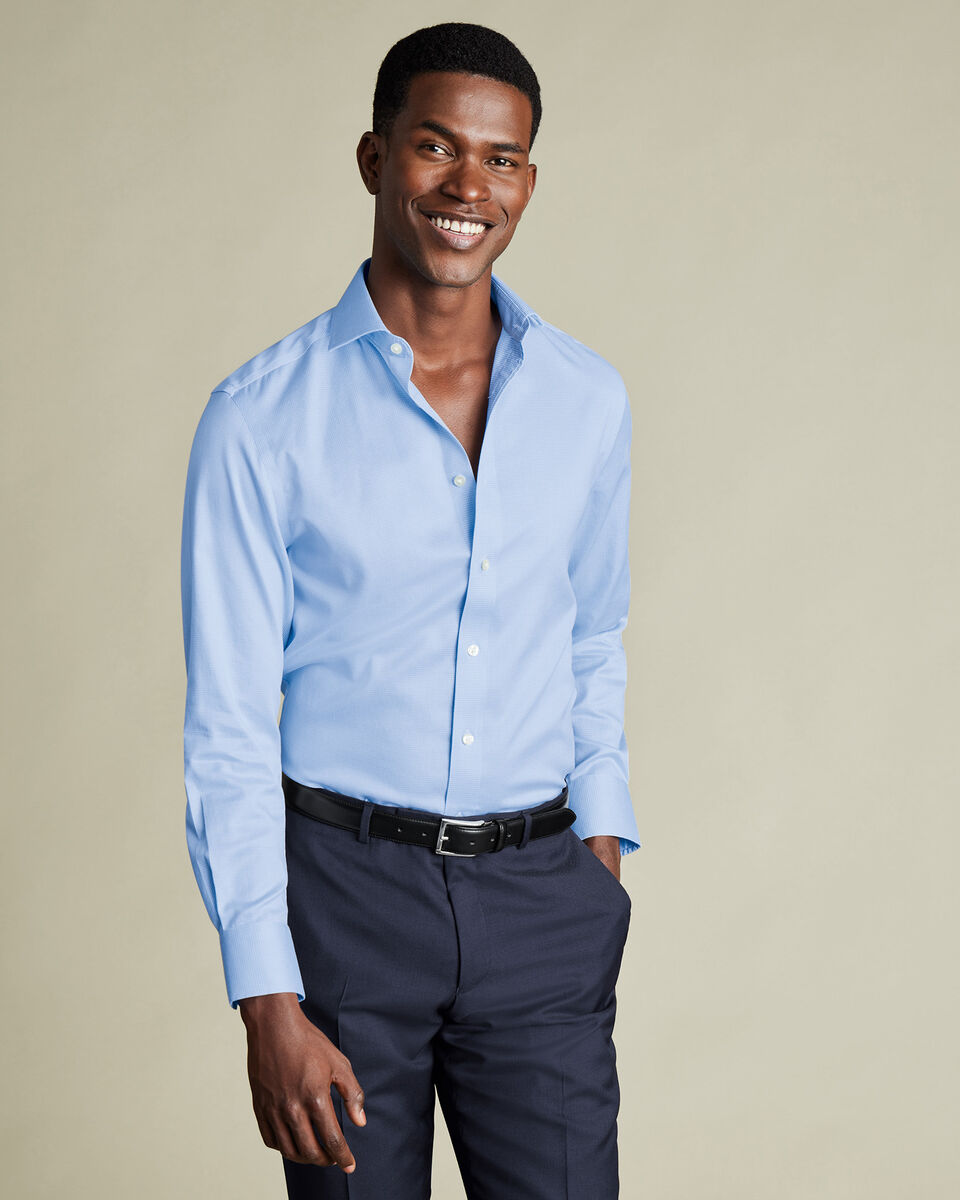 Non-Iron Puppytooth Slim Fit Shirt – Sky Blue