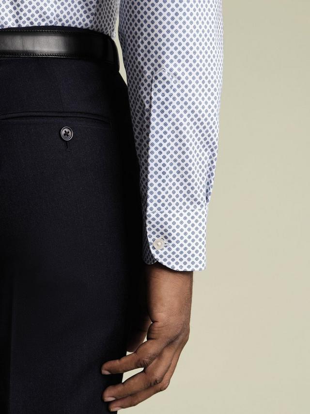 Non Iron Stretch Diamond Print Slim Fit Shirt – Denim Blue