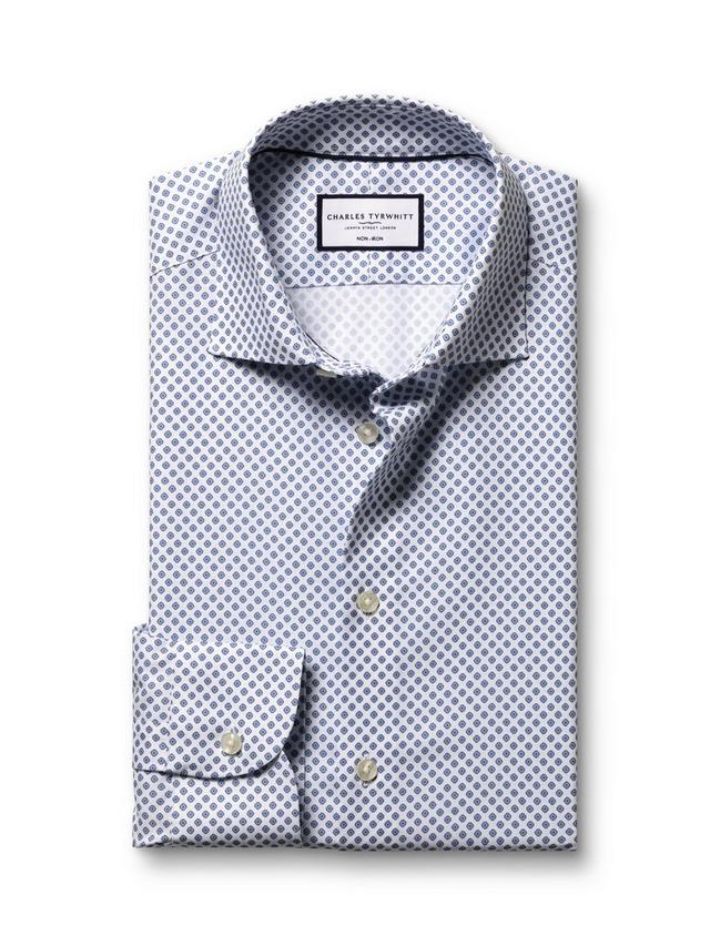 - There’s no better way to add some personality to your tailoring than with this stretch print shirt. It’s cut from tactile twill with added stretch for a perfect fit and has a neat, semi-cutaway collar. The split-back yoke allows freedom of movement.