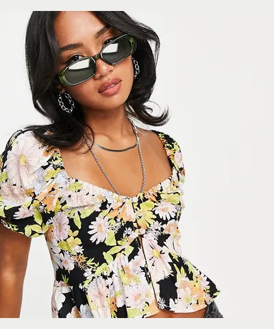 Blouse by Topshop It’s everything you’ve been scrolling for Floral print V-neck Button-through front Frill hem Cropped length Regular fit